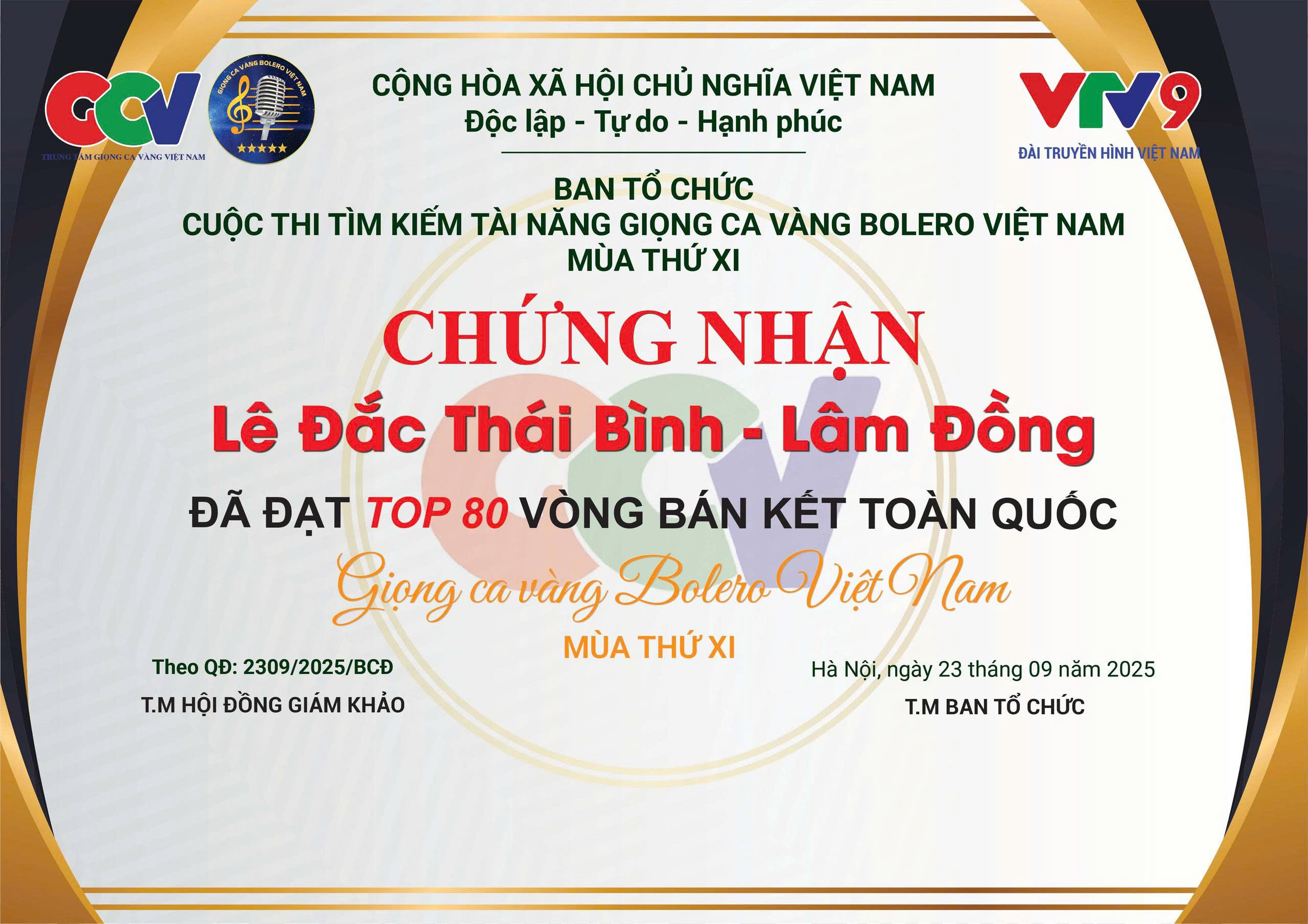 Hôm nay, ngày 23/09/2025, Ban tổ chức cuộc thi Tìm kiếm tài năng Giọng ca vàng Bolero Việt Nam mùa thứ XI năm 2025 đã chính thức công bố TOP 80 lọt vào Vòng Bán kết.