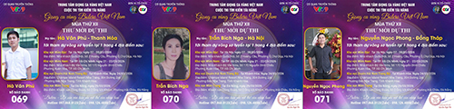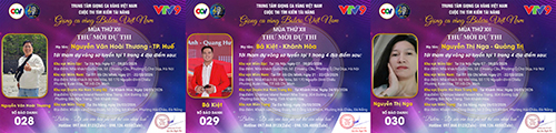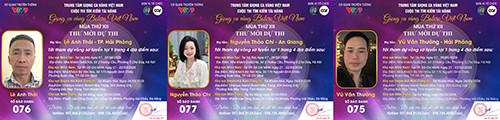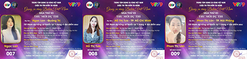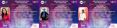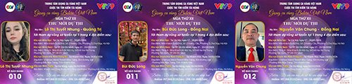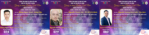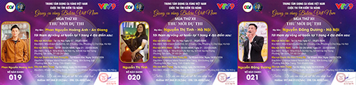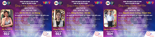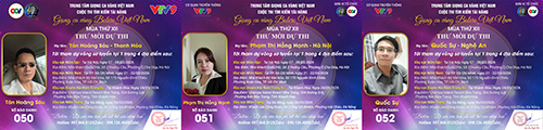 Chúc mừng SBD 016 thí sinh Trần Văn Hiền tới từ Ninh Bình. Thí sinh Huỳnh Thanh Hương tới từ TP. Cần Thơ với SBD 017. SBD 018 là thí sinh Trần Văn Công tới từ Nghệ An.