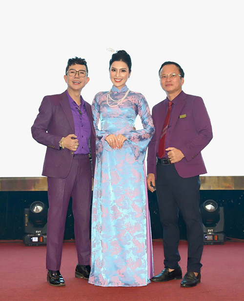 Trưởng Ban chỉ đạo - Nhà báo Phạm Ngọc Đóa (bên phải), Trưởng BTC - Nữ hoàng tài năng Kim Huyền Sâm (ở giữa) và Chủ tịch HĐGK- Danh ca Long Nhật (bên trái) chụp ảnh lưu niệm tại vòng Bán kết mùa 9