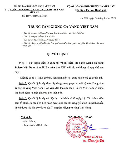 Điều lệ cuộc thi Tìm Kiếm tài năng Giọng ca Vàng Bolero Việt Nam năm 2025 mùa thứ XII